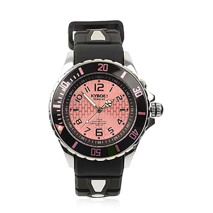 KYBOE Power Collection- Japanese Movement 100M Water Resistant Silver Shout LED Watch in Stainless Steel with Rotating Bezel and Black Strap - 40MM