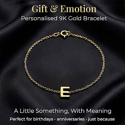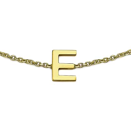 9K Yellow Gold 3.5mm X 4.5mm 'E' Initial Adjustable Bracelet 6 to 7.2 Inch
