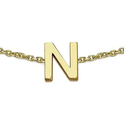 9K Yellow Gold 4mm X 5mm 'N' Initial Adjustable Bracelet 6 to 7.2 Inch