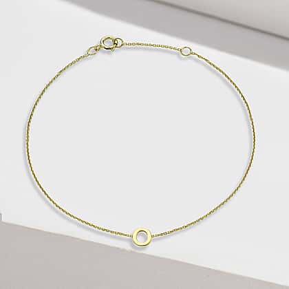 9K Yellow Gold 4.5mm X 5mm 'O' Initial Adjustable Bracelet 6 to 7.2 Inch