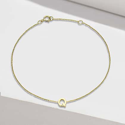 9K Yellow Gold 4.5mm X 5.5mm 'Q' Initial Adjustable Bracelet 6 to 7.2 Inch