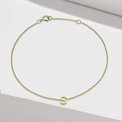9K Yellow Gold 4mm X 5mm 'S' Initial Adjustable Bracelet 6 to 7.2 Inch