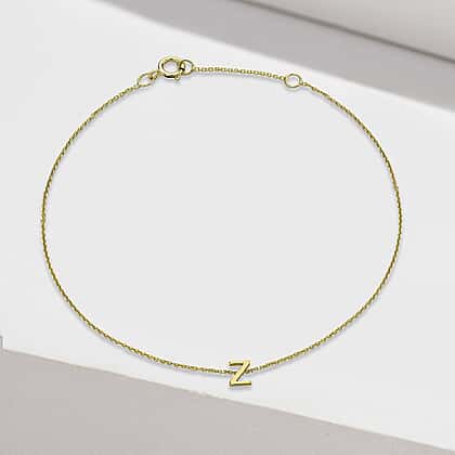 9K Yellow Gold 4mm X 5mm 'Z' Initial Adjustable Bracelet 6 to 7.2 Inch