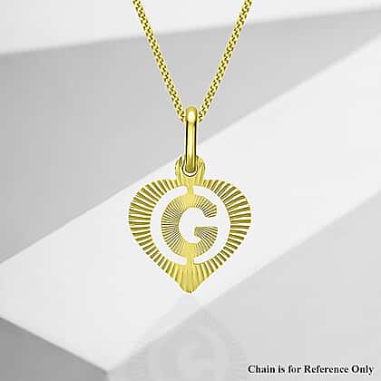 9K Yellow Gold 10.5mm x 16.5mm Diamond Cut G Initial Heart Pendant