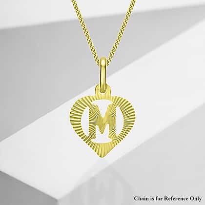 9K Yellow Gold 10.5mm x 16.5mm Diamond Cut M Initial Heart Pendant