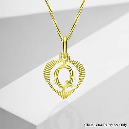 9K Yellow Gold 10.5mm x 16.5mm Diamond Cut Q Initial Heart Pendant