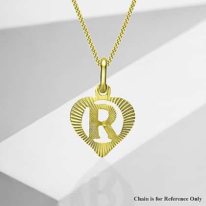9K Yellow Gold 10.5mm x 16.5mm Diamond Cut R Initial Heart Pendant