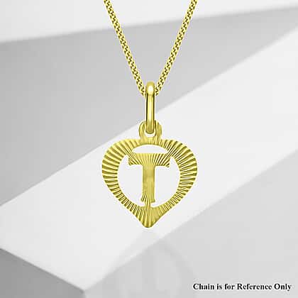 9K Yellow Gold 10.5mm x 16.5mm Diamond Cut T Initial Heart Pendant