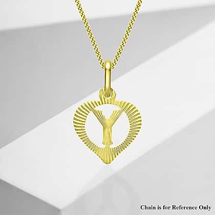 9K Yellow Gold 10.5mm x 16.5mm Diamond Cut Y Initial Heart Pendant