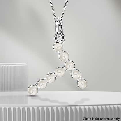 Fresh Water Pearl Initial T Pendant in Sterling Silver