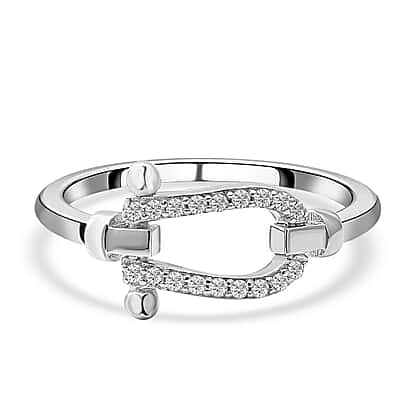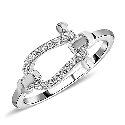 ELANZA Simulated Diamond Horseshoe Ring in Rhodium Overlay Sterling Silver
