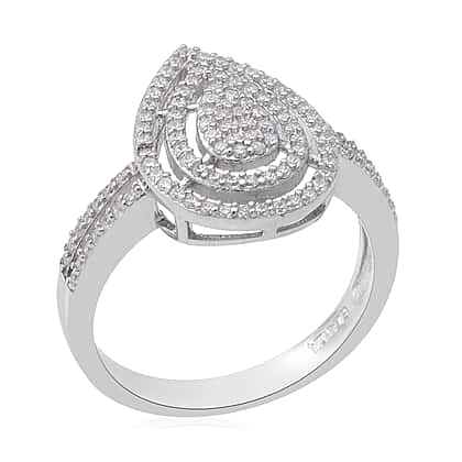 ELANZA Simulated Diamond Ring in Rhodium Plated Sterling Silver