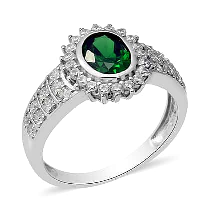 ELANZA Simulated Emerald and Simulated Diamond Ring in Rhodium Overlay Sterling Silver