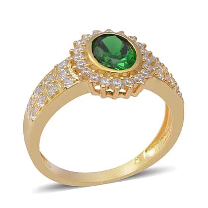 ELANZA Simulated Emerald and Simulated Diamond Ring in Yellow Gold Overlay Sterling Silver