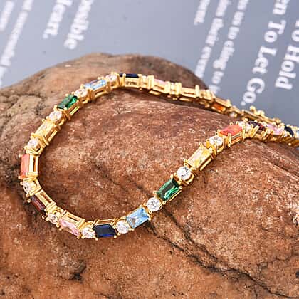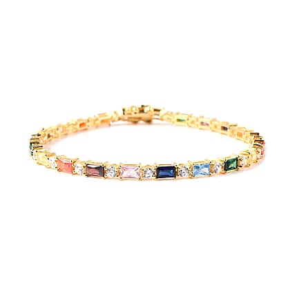 ELANZA Simulated Rainbow Sapphire and Simulated Diamond Bracelet in Gold Plated Silver 8 Inch