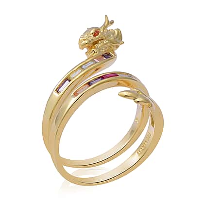 ELANZA Simulated Multi Colour Diamond Dragon Bypass Ring in Yellow Gold Plated Sterling Silver