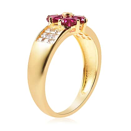 ELANZA Simulated Ruby and Simulated Diamond Four-Leaf Clover Ring in Yellow Gold Overlay Sterling Silver