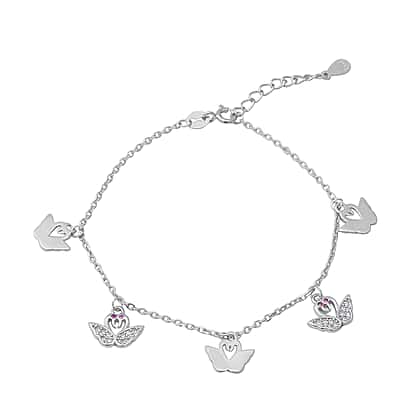 ELANZA Simulated White and Pink Diamond Adjustable Butterfly Charm Bracelet in Rhodium Plated Silver