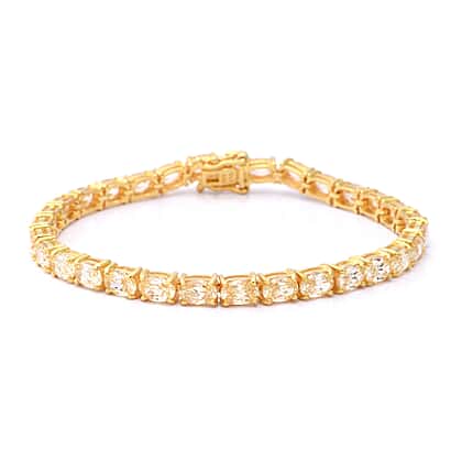 ELANZA Swiss Star Simulated Canary Diamond Tennis Bracelet in Gold Plated Silver 9.90 Grams 7.5 Inch