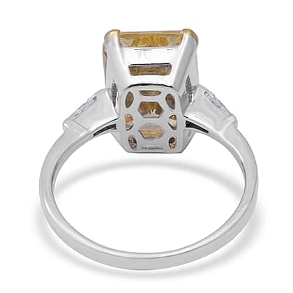 ELANZA Swiss Star Simulated Canary Diamond (Oct 14x10 mm), Simulated Diamond Ring in Rhodium Overlay Sterling Silver