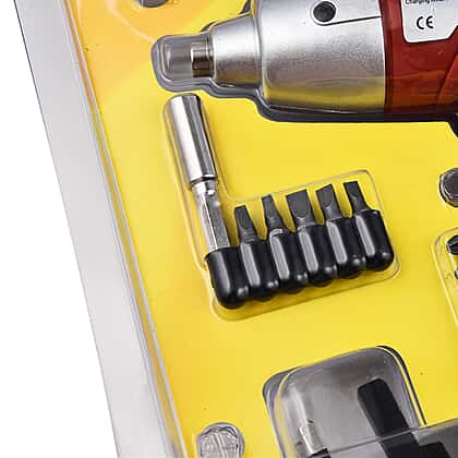 Electric Rechargeable Cordless Screwdriver Kit with Charger and Bits- Red