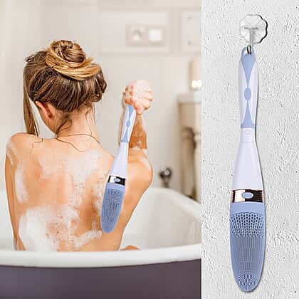 Electric Vibration Long Handle Silicone Bath Brush - Blue ( 2AA Batteries - not Incl.)