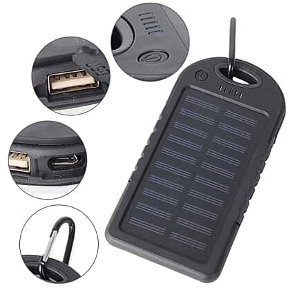 5000 mah Power Bank in Solar Panel and Mountaineering Buckle with USB Cable - Black