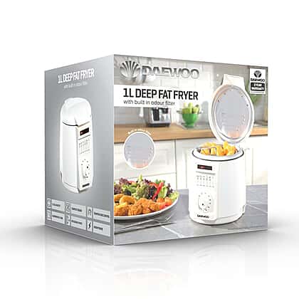 Daewoo Compact Deep Fat Fryer, your space-saving solution for flavourful creations. With a 1-litre capacity