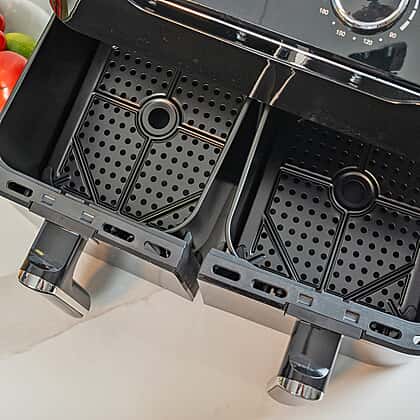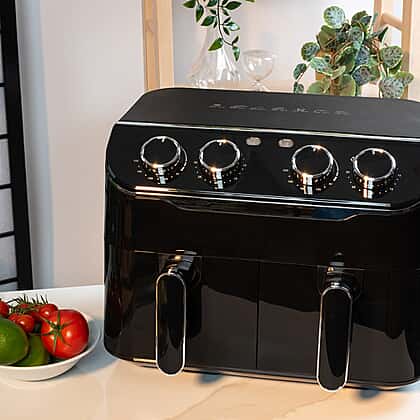 Homesmart Dual Air Fryer - Air Fry, Roast, Bake, Reheat - Uses little to no oil, Dishwasher Safe (4L-4L Draws - 2x1400W) - Black