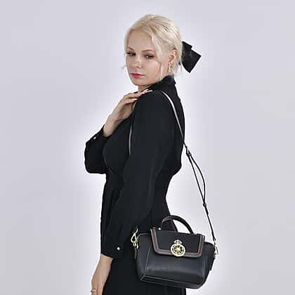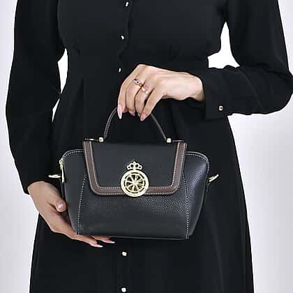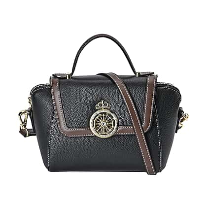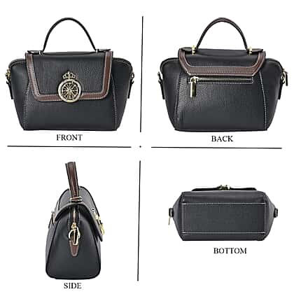 Elegant 100% Genuine Leather Crossbody Bag With Flip Top Zip Closure - Detachable Shoulder Trap - Black