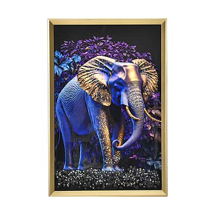 Elephant Crystal Painting with Frame (Size 60x40 cm) - Multi