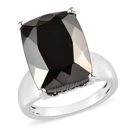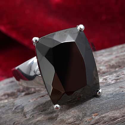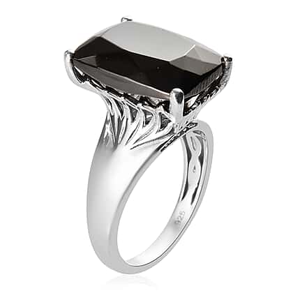6.54 Ct Elite Shungite and Zircon Solitaire Ring in Platinum Plated Silver