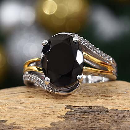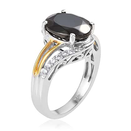 Elite Shungite (Ovl 11x9 mm), Natural Cambodian Zircon Ring in Platinum and Yellow Gold Overlay Sterling Silver 2.25 Ct.