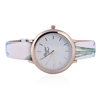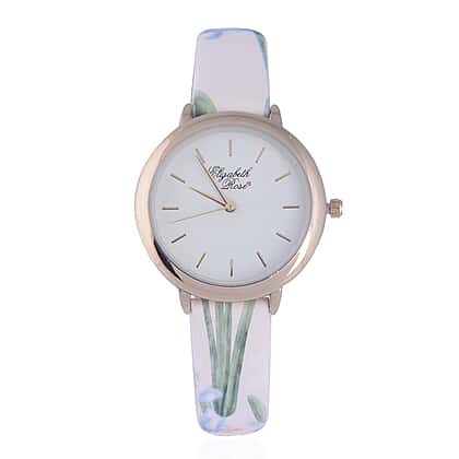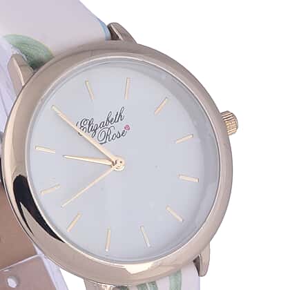 Elizabeth Rose White and Multi Colour Floral Strap Watch in Gold Tone