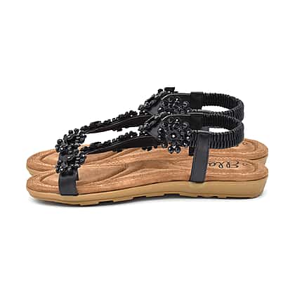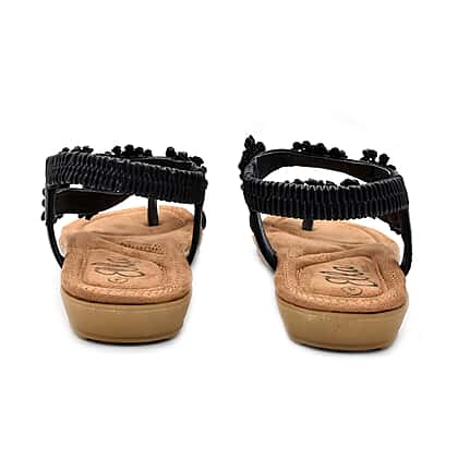 Ella Daisy Toe Post Sandal with Elastic Strap in Black