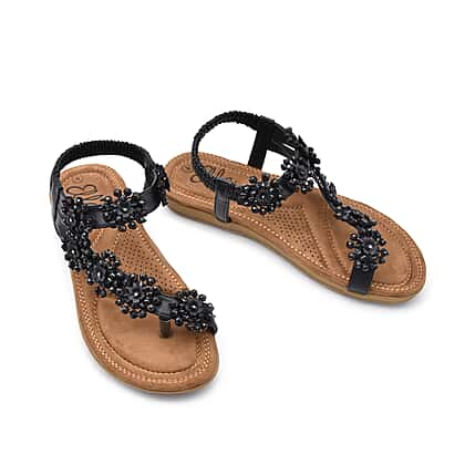 Ella Daisy Toe Post Sandal with Elastic Strap in Black (Size 4)