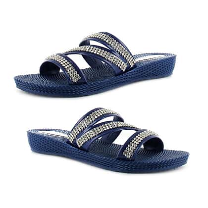 Ella Grace Diamante Slip on Sandals (Size 3) - Navy