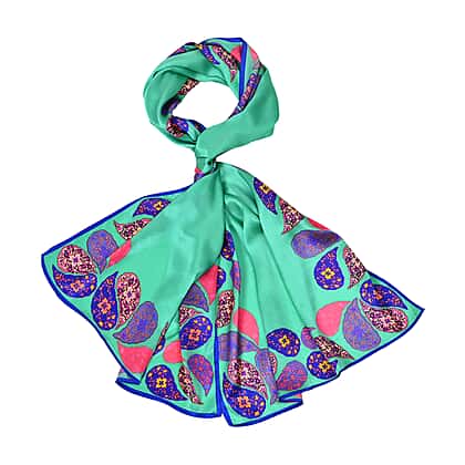 La Marey 100% Mulberry Silk Printed Scarf (Size 175x55 cm) - Green & Pink