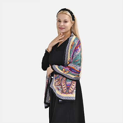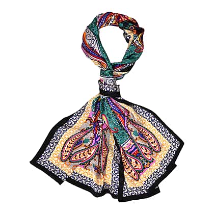 La Marey 100% Mulberry Silk Printed Scarf (Size 175x55 cm) - Green & Purple