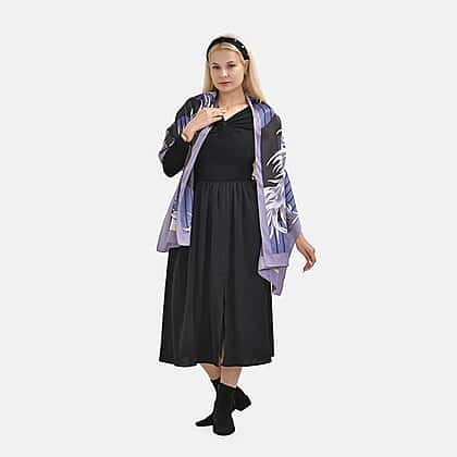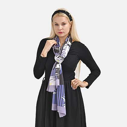 La Marey 100% Mulberry Silk Printed Scarf (Size 175x55 cm) - Purple & White