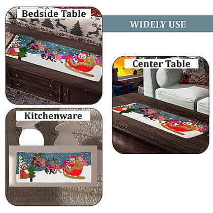 Santa on Sledge Embroidered Cotton Table Runner (Size 91x35 Cm) - Multi