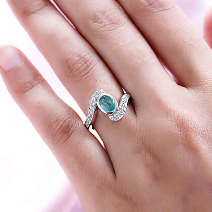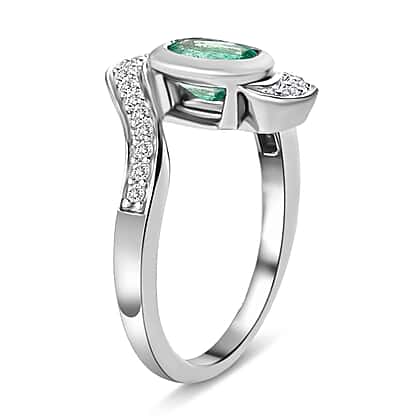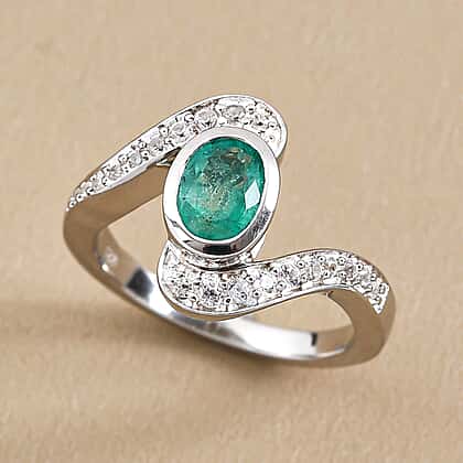 Emerald and Natural Zircon Bypass Ring in Platinum Overlay Sterling Silver 1.18 Ct.