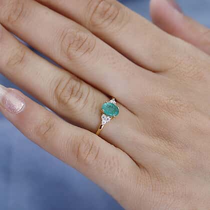 Emerald & Moissanite Ring in Vermeil YG Sterling Silver 0.98 ct