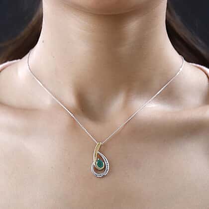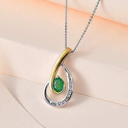 Emerald & Natural Zircon Swirl Pendant with Chain (Size 20) in Two-Tone Plated Sterling Silver
