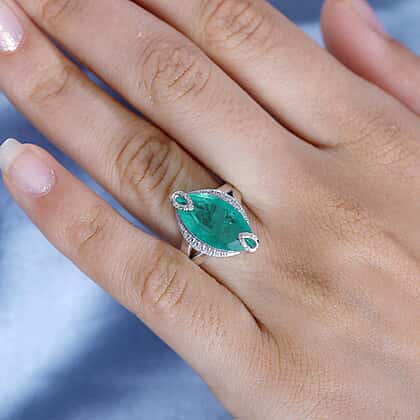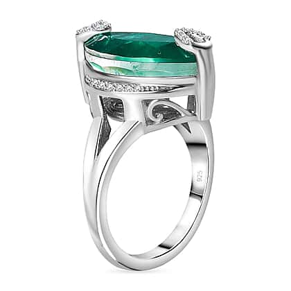Emeraldine Quartz (Marquee) & Natural Zircon Ring in Rhodium Overlay Sterling Silver 6.70 Ct.