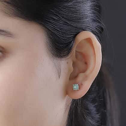 Emeraldine Quartz Solitaire Stud Push Post Earring in Platinum Overlay Sterling Silver 1.93 Ct.
