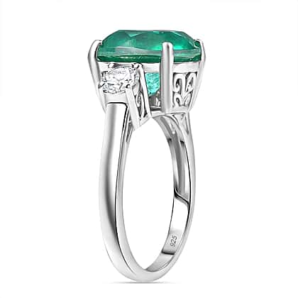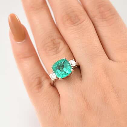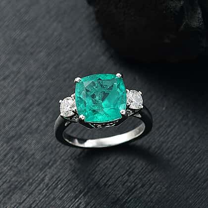 Emeraldine Triplet Quartz & Moissanite Solitaire Ring in Rhodium Overlay Sterling Silver 5.07 Ct.
