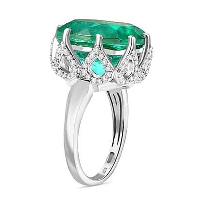 Emeraldine Triplet Quartz & White Zircon Solitaire Ring in Rhodium Overlay Sterling Silver 12.57 Ct.