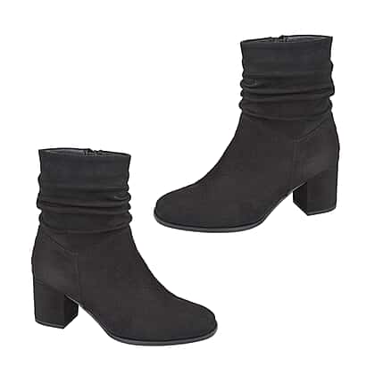 Step into effortless style with the Shoes by Emma Ladies Ruched Ankle Boots with Cubed Heel. Crafted with a soft faux suede upper, these boots feature a ruched design that adds a modern touch. The side zip fastening allows for easy wear, while the closed-toe structure provides a comfortable fit. The sturdy cubed heel offers just the right amount of lift, making them perfect for all-day wear. Whether paired with jeans or a dress, these versatile ankle boots are a great addition to your wardrobe for casual outings or evening wear.