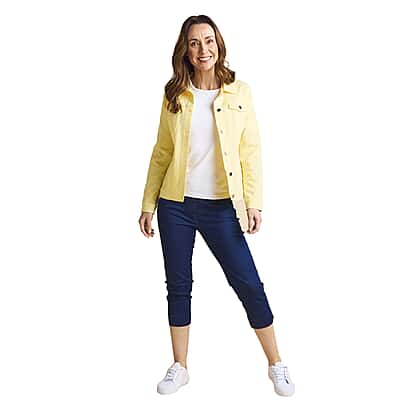 Stay cool and comfortable with the Emreco Classic Denim Blue Stretch Crop trousers—perfect for everyday wear and weekend style. Made from a soft, flexible blend of cotton, polyester and elastane, these crops offer a gentle stretch for ease of movement. The cropped cut is flattering and versatile, ideal for warmer days or casual outings. Designed with a comfortable elasticated waistband, they pull on easily with no buttons or zips. Two front pockets add function without compromising the clean look. Whether styled with a tee or lightweight jacket, these trousers are a must-have for effortless, pulled-together dressing.